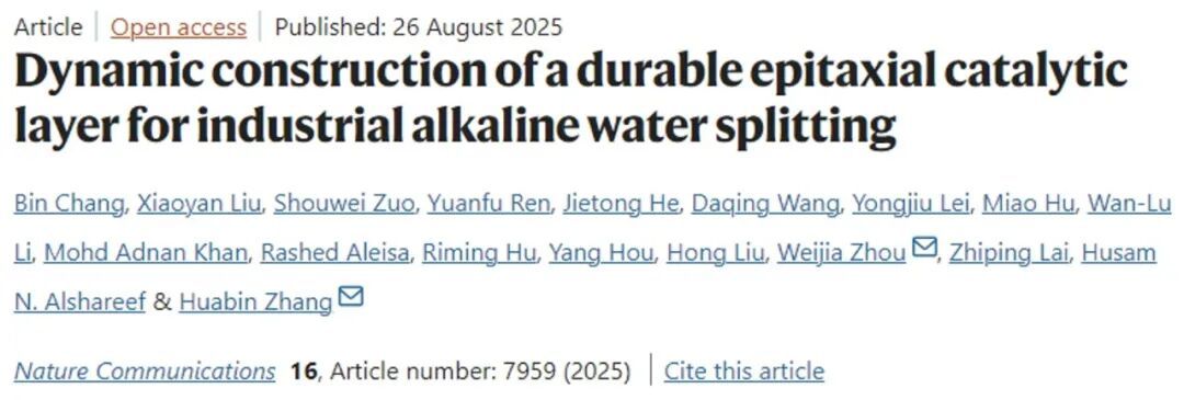 Chang, B., Liu, X., Zuo, S. et al. Dynamic construction of a durable epitaxial catalytic layer for industrial alkaline water splitting. Nat. Commun., 2025, 16, 7959.