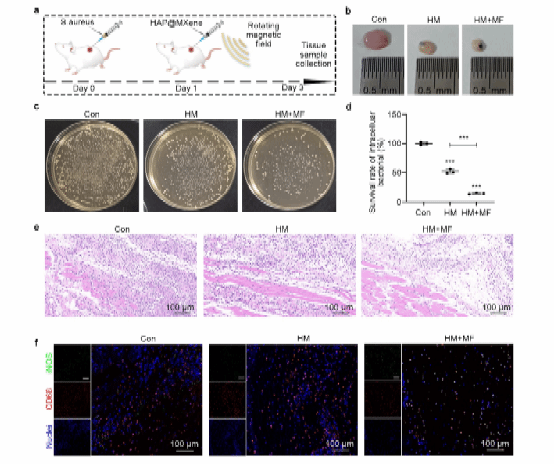 图 8 . HAp@MXene介导的免疫调节抗菌性能分析