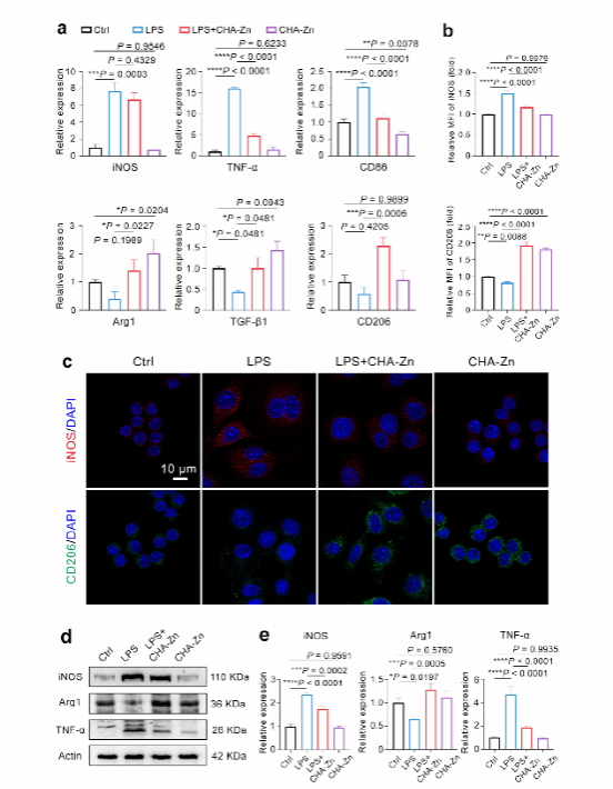 图3. CHA-Zn NPs重编程巨噬细胞表型