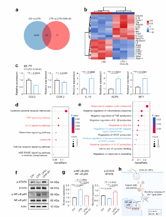 图6. CHA-Zn NPs抗炎机制的RNA-seq分析