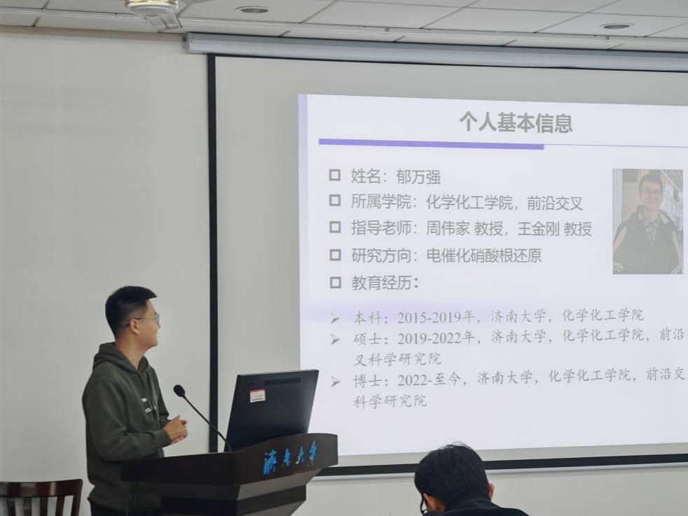 博士学生代表郁万强上台交流,分享自身科研成果、读博经历以及文献阅读经验,还细致讲解了具体实验安排中提前准备仪器和试剂的技巧,最后向全体新生送上美好的祝福。