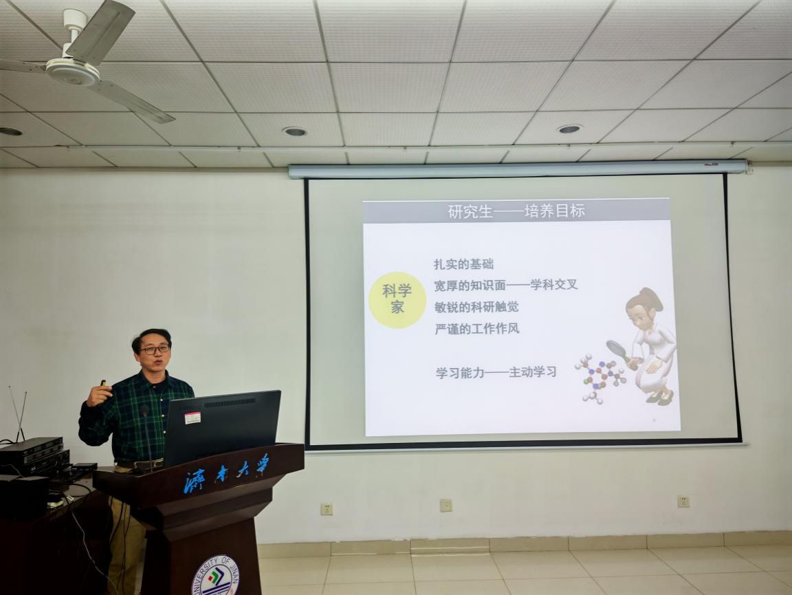 10月19 日上午9点,前沿交叉科学研究院2025级研究生新生见面会于济南大学逸夫楼A111会议室隆重举行。研究院刘宏教授、现任院长周伟家教授、副院长王金刚教授、于欣教授、孙德辉教授及两位行政人员孙新颖老师、孟瑞琦老师,博士学生代表郁万强等出席会议,2025级全体研究生新生参与本次见面会,会议由王金刚教授主持。